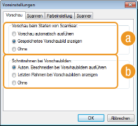 Klicken Sie auf [Voreinstellungen], um verschiedene Einstellungen zu konfigurieren, darunter auch den Vorgang beim Scannen.