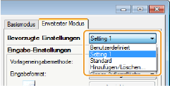 Wählen Sie [Hinzufügen/Löschen] in [Bevorzugte Einstellungen].