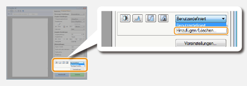 Der Bildschirm [Farbtonkurveneinstellungen hinzufügen/löschen] oder [Grenzwerteinstellungen hinzufügen/löschen] wird angezeigt.