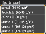 Una vez registradas las opciones de papel predeterminadas, la pantalla de configuración del papel no aparece cuando se carga papel, y se utiliza la misma configuración en todo momento. Si carga un tamaño o tipo de papel diferentes sin cambiar las opciones de papel, es posible que el equipo no imprima correctamente. Para evitar este problema, seleccione <Especificar cuando cargue papel> en el paso 3, y, a continuación, cargue el papel.
