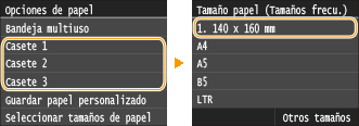 Cuando se selecciona el tamaño de papel para el casete de papel
