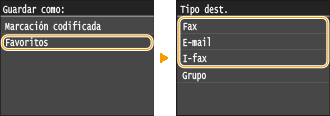 <Opciones de fax>. No obstante, los ajustes realizados desde <Libreta dir.> se habilitarán para las opciones detalladas de destinos registrados en la libreta de direcciones. |