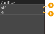 A la hora de preparar varias copias de documentos de varias páginas, establezca <Clasificar> en <On> para clasificar las copias según el orden de las páginas. Esta función resulta útil cuando se preparan folletos para reuniones o presentaciones.
