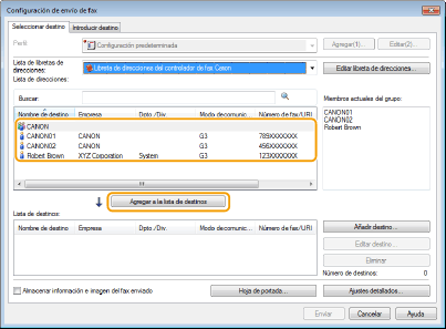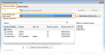 seleccione la libreta de direcciones en [Lista de libretas de direcciones].