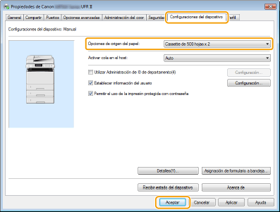 Establezca [Opciones de origen del papel]