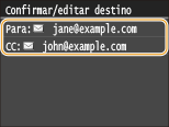 Puede seleccionar un destino entre los tres últimos destinos utilizados. Cuando se especifica un destino utilizado anteriormente, el equipo también configura las mismas opciones de lectura utilizadas la última vez que se enviaron documentos a dicho destino como, por ejemplo, la densidad.