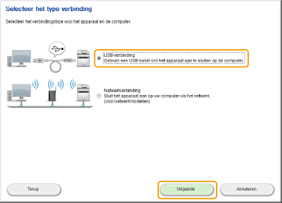 Selecteer [USB-verbinding] en klik op [Volgende].
