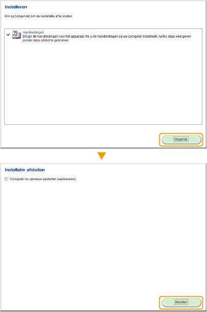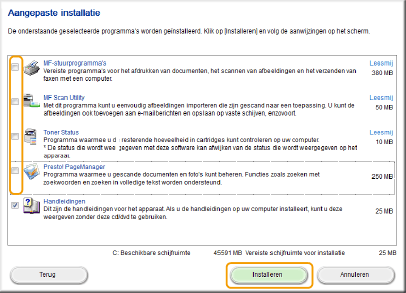 Schakel alle selectievakjes uit behalve dat voor [Handleidingen] en klik op [Installeren].