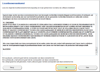 Lees de licentieovereenkomst en klik op [Ja] om akkoord te gaan.
