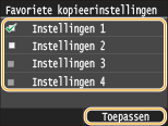 Schakel de selectievakjes in voor alle instellingen die op het scherm Start moeten worden weergegeven en tik op <Toepassen>.