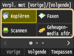 U kunt knoppen toevoegen aan het scherm Start voor snelkoppelingen van vaak gebruikte functies, zoals <Kopiëren>, <Faxen> en <Scannen>. Bijvoorbeeld, u kunt taken sneller en efficiënter uitvoeren door een reeks instellingen toe te wijzen (bijvoorbeeld 'Scan beide zijden van een document, sla het op als een zeer gecomprimeerd PDF-bestand en verstuur het via e-mail') aan een enkele knop.