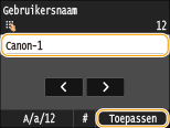 Voer uw gebruikersnaam in met de numerieke toetsen en tik op <Toepassen>.