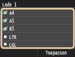 Schakel de selectievakjes uit voor papierformaten die u niet wilt weergeven.