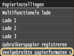 Tik op <Multifunctionele lade>, <Lade 1>, <Lade 2> of <Lade 3>.