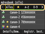 U kunt fax-/scanbestemmingen in het Adresboek die u veel gebruikt, registreren en ze gemakkelijk selecteren wanneer u ze nodig hebt. U kunt naar bestemmingen zoeken op alfabet, uit lijsten in het Adresboek of door driecijferige nummers in te voeren (nummers voor verkort kiezen). U kunt ook bestemmingen sneller opgeven door middel van de volgende functies.