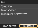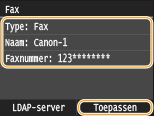 De gebruikersnaam, het faxnummer, of e-mailadres van de geselecteerde gebruikers die zijn geregistreerd op de LDAP-server wordt ingevoerd in het vak voor de bestemming.