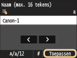 ![]() Als er een verificatiescherm verschijnt wanneer u op <Zoeken starten> tikt, voert u de gebruikersnaam van het apparaat en het bijbehorende wachtwoord in die zijn geregistreerd op de LDAP-server en tikt u vervolgens op <Toepassen>. LDAP-servers registreren
