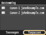 Herhaal stap 7 tot en met 9 totdat u alle gewenste bestemmingen hebt opgeslagen en tik vervolgens op <Toepassen>.