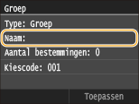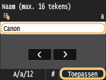 Voer de naam in met de numerieke toetsen en tik op <Toepassen>.