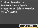 Is het apparaat ingesteld op <Antwoordapparaat>, tik dan op <Volgende>.