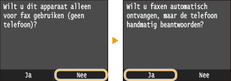 Tik op <Ja> of <Nee> om de ontvangstmodus te selecteren.