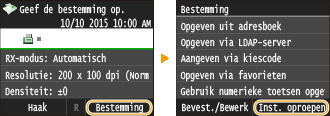 U kunt een bestemming selecteren uit de drie laatst gebruikte bestemmingen. Als u een eerder gebruikte bestemming opgeeft, worden ook de laatst gebruikte faxinstellingen, zoals de dichtheid, voor die bestemming geselecteerd.