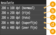 U kunt de resolutie selecteren die het beste past bij uw documenttype. Hoe hoger de resolutie, des te scherper de afbeelding, maar des te langer het duurt om de fax te verzenden.