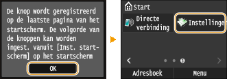Als u <Ja> selecteert, wordt een bericht weergegeven. Bekijk het en tik vervolgens op <OK>. De geregistreerde combinatie van instellingen wordt toegevoegd aan het scherm Start als een knop voor een snelkoppeling.