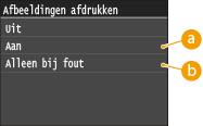 Selecteer <Aan> of <Alleen bij fout>