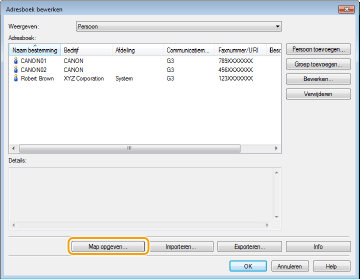 De locatie op voor het opslaan van de adresboekgegevens kan worden veranderd in iedere willekeurige map. U kunt het adresboek niet gebruiken als u geen toegang hebt tot de map waarin het adresboek is opgeslagen. In dit geval kiest u een andere opslaglocatie voor het adresboek.