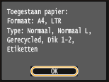 Controleer dat papier van het formaat en de soort dat op het scherm wordt getoond, in het apparaat is geplaatst en druk op <OK>.