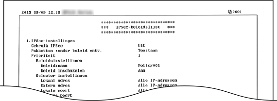 U kunt controleren welke beleidsinstellingen en IPSec-instellingen zijn geregistreerd op de machine door het rapport IPSec-beleidslijst af te drukken.