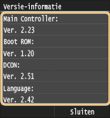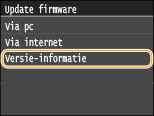 U kunt de firmwareversie controleren vanaf het bedieningspaneel van het apparaat. Na het actualiseren van de firmware moet u controleren of het actualiseren correct was uitgevoerd. De firmwareversie controleren