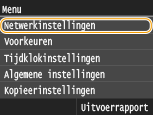 Alle instellingen voor het netwerk worden kort toegelicht. Standaardinstellingen worden aangegeven met een dolksymbool (