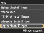 Alle instellingen voor het kopiëren worden kort toegelicht. Standaardinstellingen worden aangegeven met een dolksymbool (