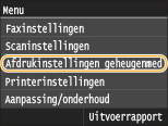Alle instellingen voor het afdrukken van geheugenmedia worden kort toegelicht. Standaardinstellingen worden aangegeven met een dolksymbool (
