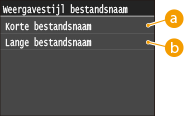 Selecteer <Korte bestandsnaam> of <Lange bestandsnaam>