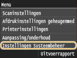 Alle instellingen voor systeembeheerinstellingen worden kort toegelicht. Standaardinstellingen worden aangegeven met een dolksymbool (  ).