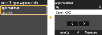 Typ maximaal 32 alfanumerieke tekens voor de naam en de installatielocatie om de machine te identificeren.