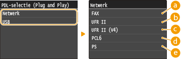 Selecteer een paginabeschrijvingstaal (PDL), zodat de machine wordt gedetecteerd als een printer die compatibel is met die taal wanneer de machine via Plug and Play wordt aangesloten op een computer.