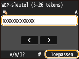 Voer de netwerksleutel in met de numerieke toetsen en tik op <Toepassen>.