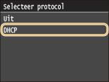 Tik op <Uit>. Als u tikt op <DHCP> wanneer deze dienst niet beschikbaar is, zal het apparaat tijd en communicatiemiddelen verspillen met het op het netwerk zoeken naar deze dienst.