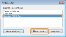 Selecteer [Canon MFNP Port] bij [Beschikbare poorttypen] en klik op [Nieuwe poort].