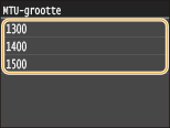 In de meeste Ethernet-netwerken is 1500 bytes de maximale grootte van een gegevenspakket dat kan worden verzonden. Een pakket is het blok met gegevens waarin de oorspronkelijke gegevens worden opgedeeld voordat ze worden verzonden. De maximale verzendeenheid (MTU) kan per netwerk verschillen. Wijzig de instellingen van het apparaat indien nodig. Neem voor meer informatie contact op met de netwerkbeheerder.