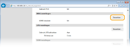 Als het IP-adres van de WINS-server wordt verkregen van een DHCP-server, heeft het verkregen IP-adres prioriteit boven het IP-adres dat is ingevoerd in het vak [WINS-serveradres].