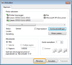 Tik of klik op [Toestellen] [Afdrukken] het printerstuurprogramma voor dit apparaat [Afdrukken].Als u afdrukt volgens deze methode, is er slechts een beperkt aantal instellingen beschikbaar.