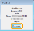 Als het bericht [Er is iets met de printer. Ga naar het bureaublad om dit op te lossen.] wordt weergegeven, gaat u naar het bureaublad en volgt u de instructies in het dialoogvenster. Dit bericht verschijnt als de machine zodanig is ingesteld dat de gebruikersnaam wordt weergegeven tijdens taken zoals afdrukken.