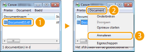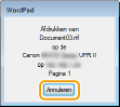 Annuleren vanuit een programmaIn sommige programma's verschijnt het onderstaande scherm. U kunt het afdrukken annuleren door te klikken op [Annuleren].