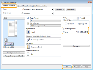 De instellingen voor vergroten/verkleinen in bepaalde programma's hebben prioriteit boven de desbetreffende instellingen in het printerstuurprogramma.