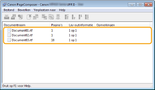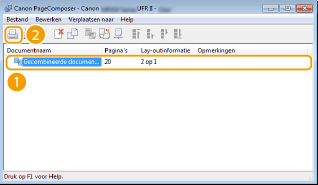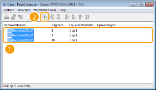 De documenten worden toegevoegd aan Canon PageComposer.